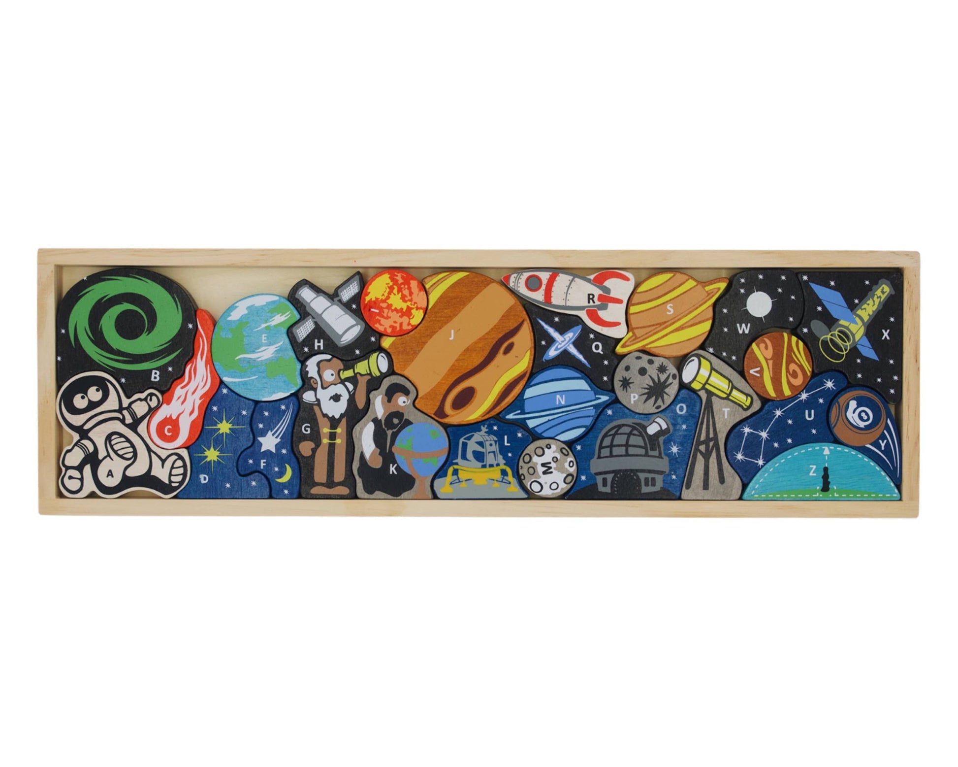 The Space A to Z Puzzle and Playset is an out of this world science adventure. The chunky durable pieces teach the alphabet through space-related objects, from A is for Astronaut Armstrong to Z is for Zenith. Made of rubberwood, this colorful wooden puzzle doubles as a space adventure play set that grows with children as they tell new stories and continue to explore. So grab the telescope, hop in the rocket, and let the learning voyage begin! Intended for ages 3 and up. Based in Fort Collins, Colorado, BeginAgain draws inspiration for our fantastic, wacky and educational toys, games and puzzles from our big and beautiful world! We design toys that satisfy all styles of children’s playing, with no batteries required. Using sustainably harvested materials, BeginAgain works to benefit our kids and our environment.