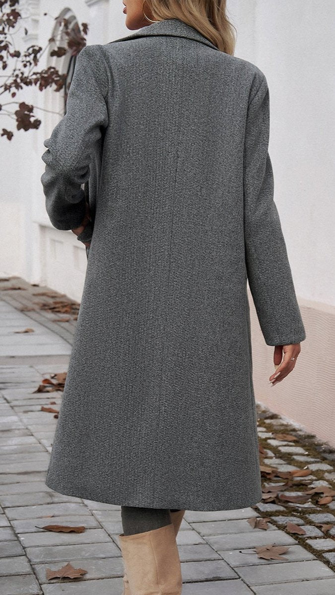 This double breasted lapel jacket is the perfect jacket to dress up any outfit. The material is soft.
