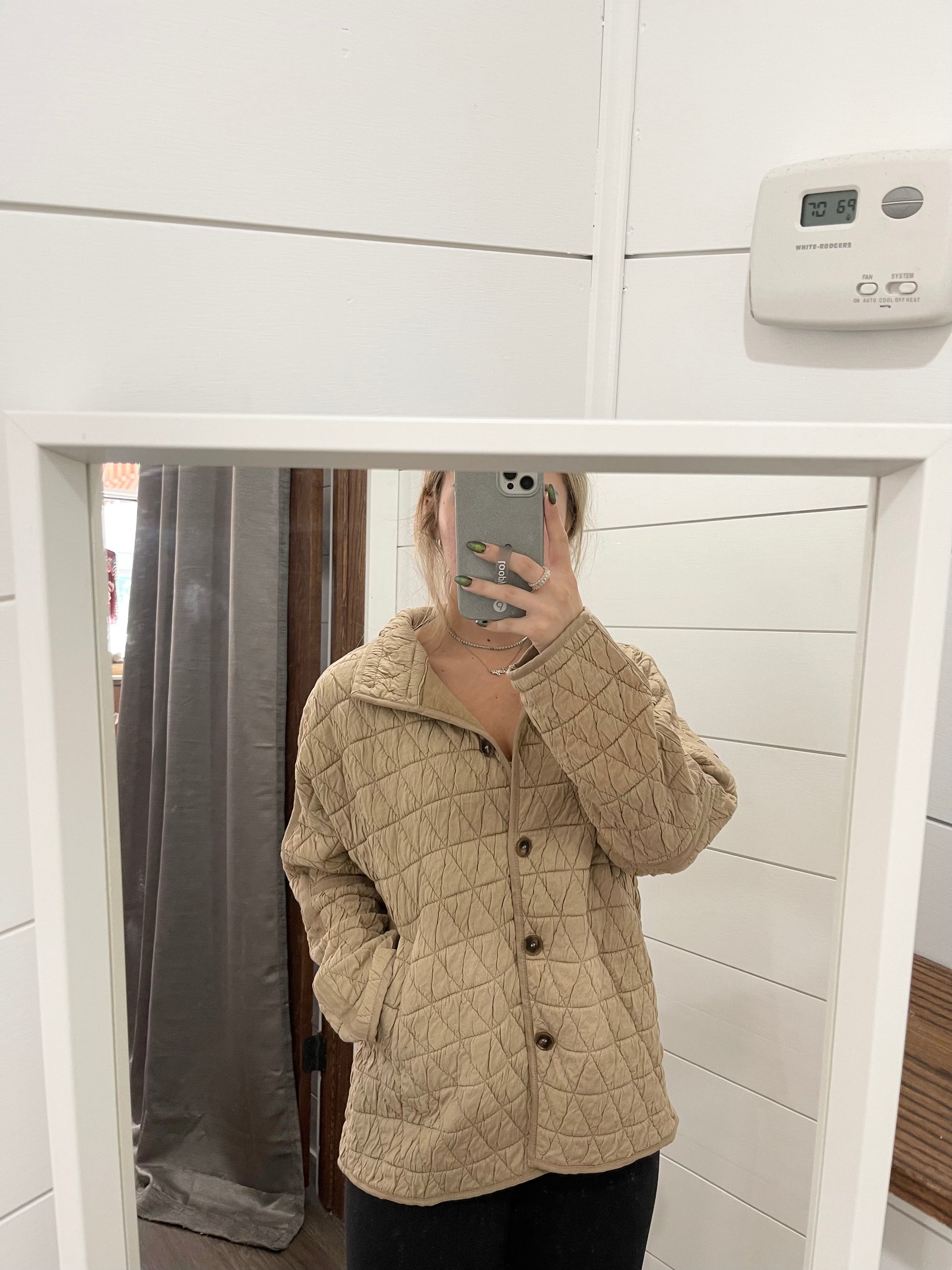 Comfy and stylish looking soft quilted jacket. Slouchy and oversized fit that's perfect for layering.