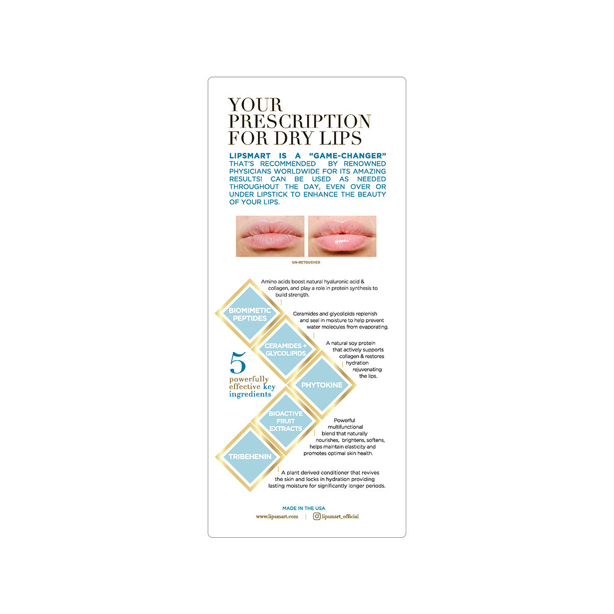 LIPSMART is a product that truly works! It’s much lighter on your lips than most balms and it seals in moisture for up to six hours. LIPSMART is made using the highest quality of peptides and ceramides to lock in moisture, providing continuous hydration and long-lasting relief. LIPSMART is a proven and effective solution for all dry lip concerns.
