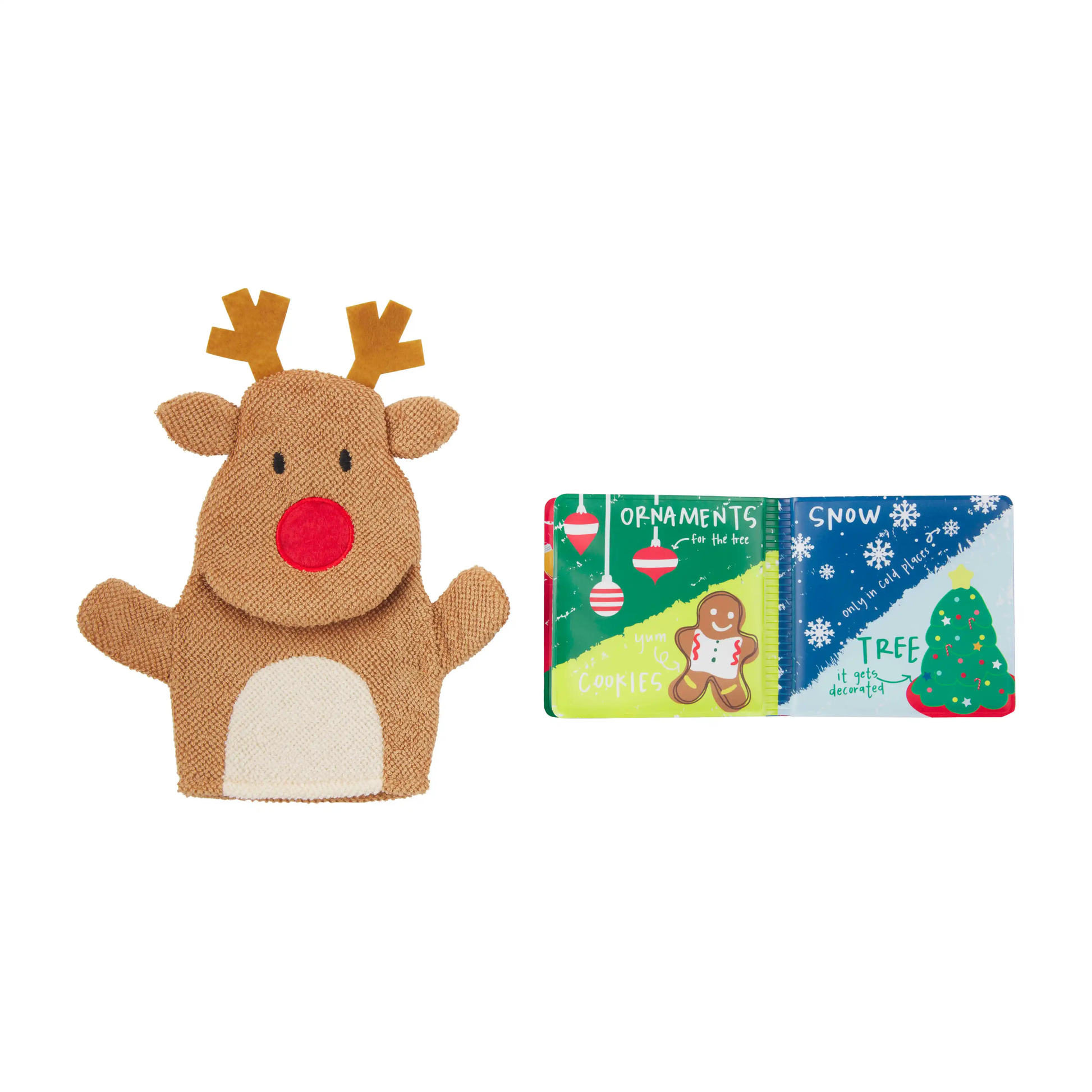 Celebrate the best things about Christmas with this Santa Bath Book. The vinyl bath book comes with terrycloth washcloth puppet. The book tells the story of the best things about Christmas. The puppet features a Santa face, perfect for entertaining your little ones during bath time.