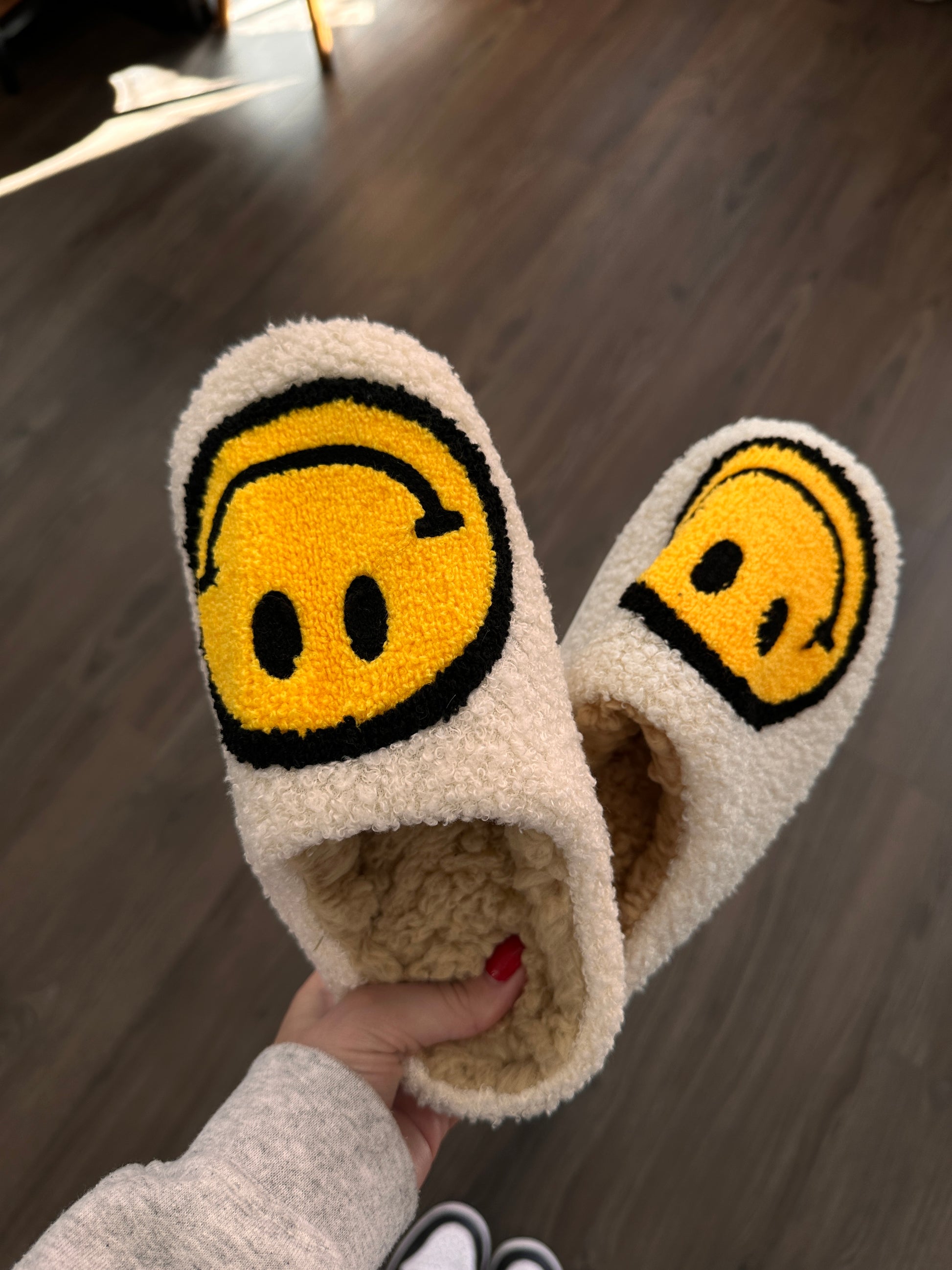 We live for the cozy things... like these sherpa-lined Smiley Face Slippers! Made with the softest boucle and a sturdy rubber sole, they're perfect for walking your dog, grabbing a quick coffee, or spending the day lounging at home!