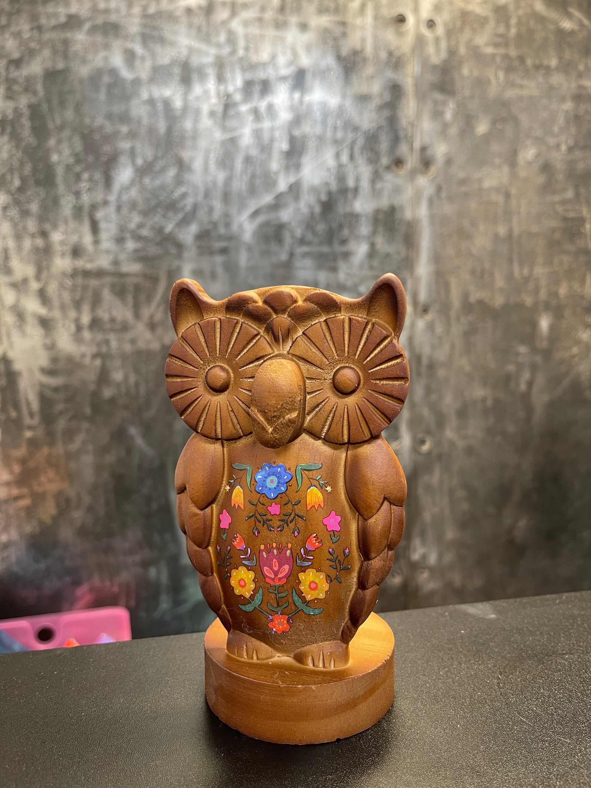 Hand-carved and floral painted, this wooden owl not only makes you smile when you see him, he keeps your glasses in a safe place and keeps them from getting scratched!