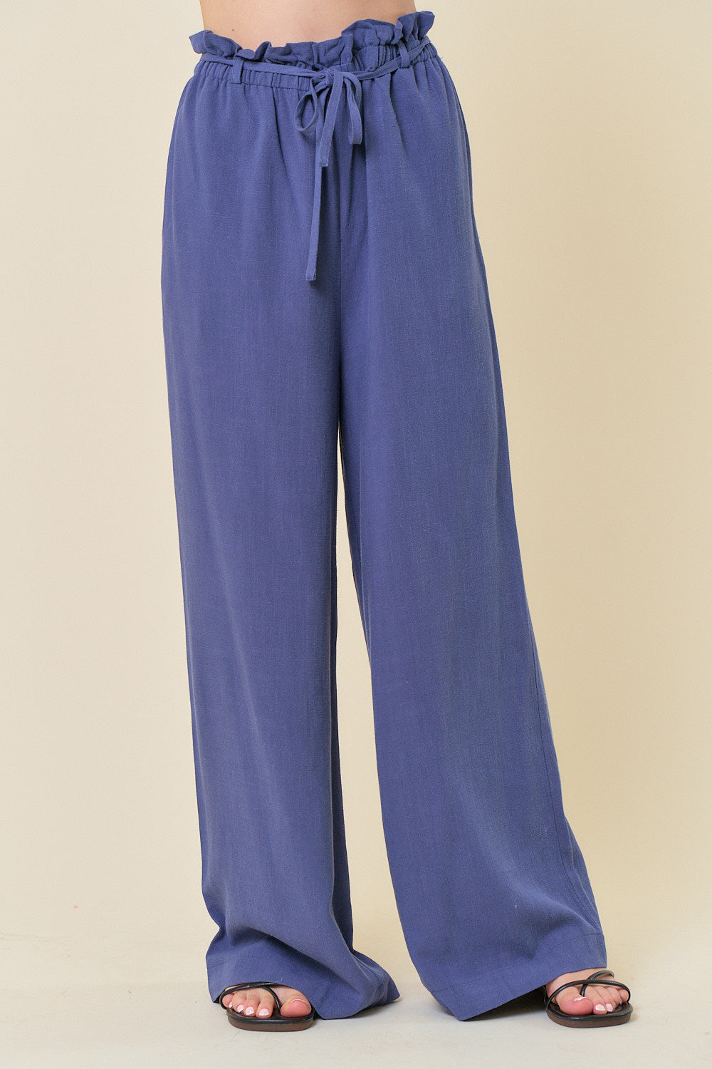 RAYON LINEN PAPER BAG WIDE LEG PANTS
